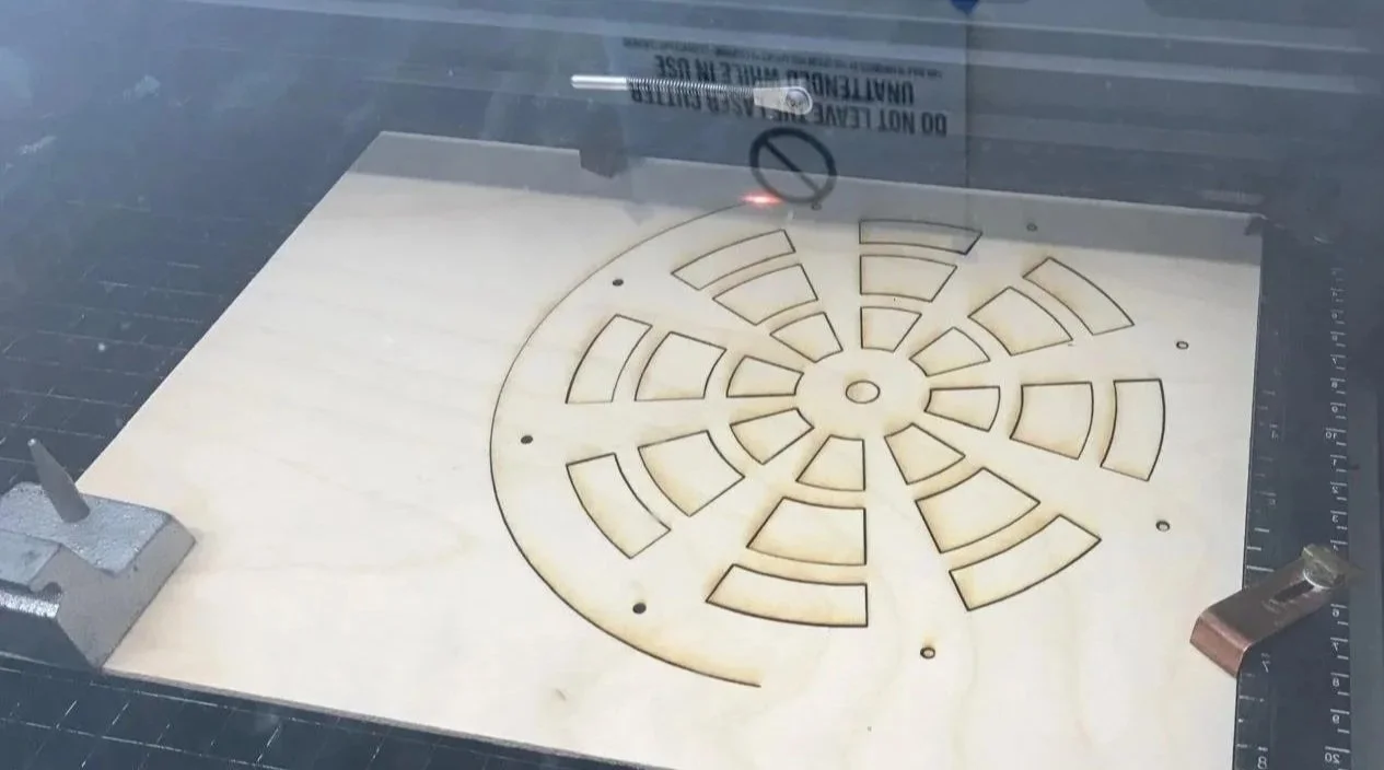 For this project, I created CAD models in SolidWorks and used SolidWorks Assemblies to ensure proper fitment. Then I created SolidWorks Drawings, and imported those drawings into Adobe Illustrator. I used a laser cutter along the Illustrator vector drawings to cut each piece from plywood. After some experimentation with tolerances, I successfully assembled the ferris wheel without adhesive.